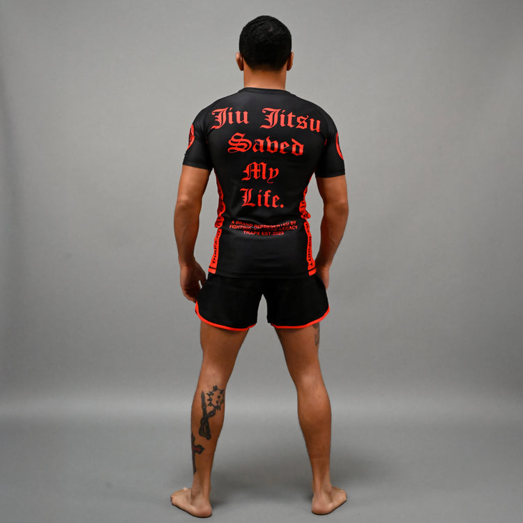 JIU JITSU SAVED MY LIFE SHORT SLEEVE RASHGUARD - BLACK
